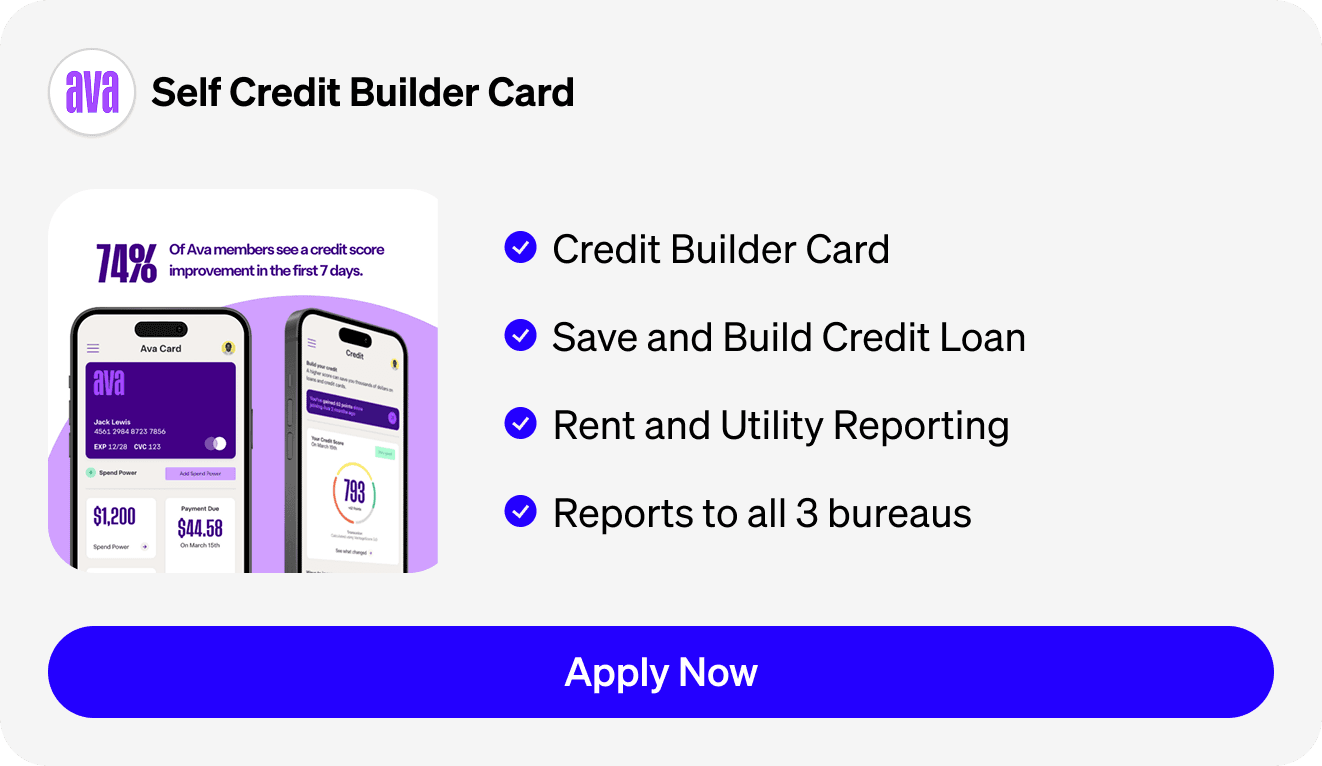 Ava offers a credit builder card as part of a mobile-first financial app designed for people with no credit or low credit scores. The Ava credit builder card connects to a linked bank account where your paycheck is typically deposited, rather than requiring a traditional security deposit. This structure allows users to access credit-building functionality without locking up funds upfront. Ava reports account activity to the major credit bureaus, which helps users establish or rebuild credit over time through responsible use.